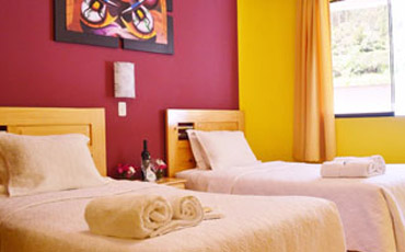 NUESTRAS HABITACIONES : Amplias y cómodas camas. Baño Privado y kit de aseo personal. Agua caliente las 24 horas. TV con Cable. Cafetería Bar 24h Estacionamiento y Seguridad 24h horas personal de recepción