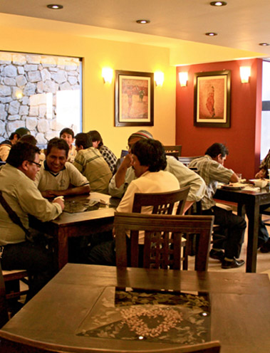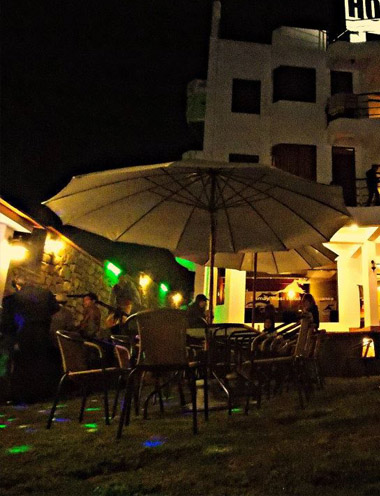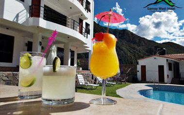 Tenemos una terraza con 24 sillas, donde se pueden disfrutar de la piscina, BBQ, horno de barro y áreas verdes. Ofrecemos platos típicos de la Región, criollos e internacionales.